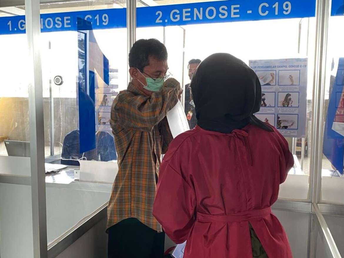 Pada tanggal 27 April 2021 pukul 09.00 WIB telah dilaksanakan uji coba penggunaan alat deteksi GeNose C-19 ini kepada 50 orang pegawai PT Angkasa Pura I (Persero) dan 50 orang perwakilan dari komunitas bandara. Uji coba ini dilakukan sebagai bahan evaluasi dan upaya untuk mengetahui hal apa saja yang masih kurang agar saat pelaksanaannya layanan ini dapat berjalan lebih baik lagi dan tidak terjadi penumpukan antrean.